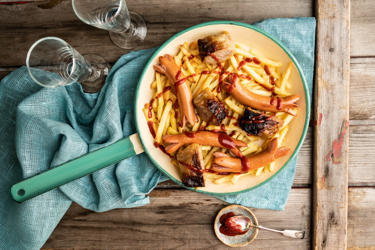 Helppo ruoka vapuksi syntyy yhdellä pellillä Laita valmiit ranskalaiset pellille