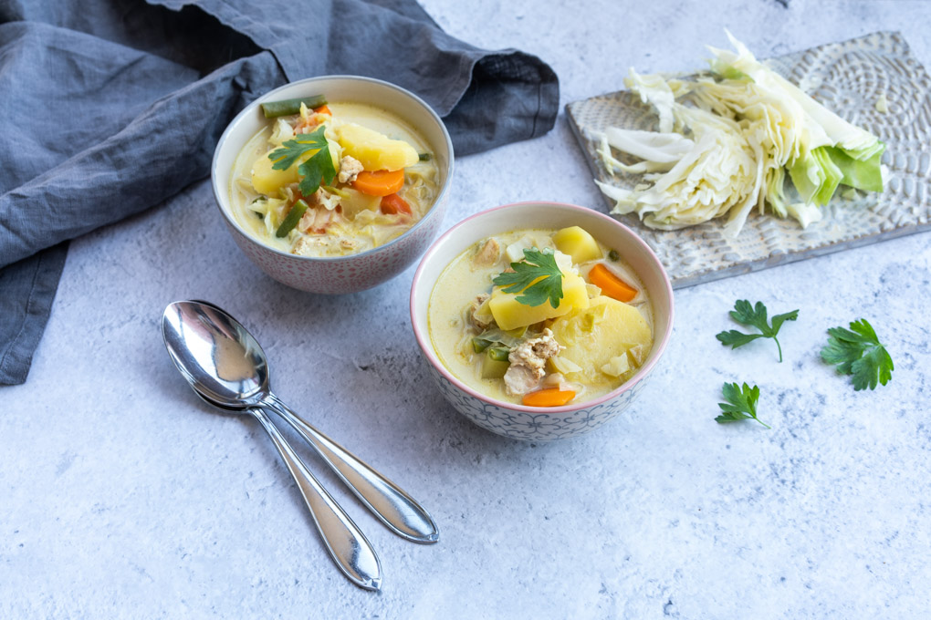 Juustoinen broileri-kaalikeitto 1 l vettä 1 kanaliemikuutio tai kanafondi 1