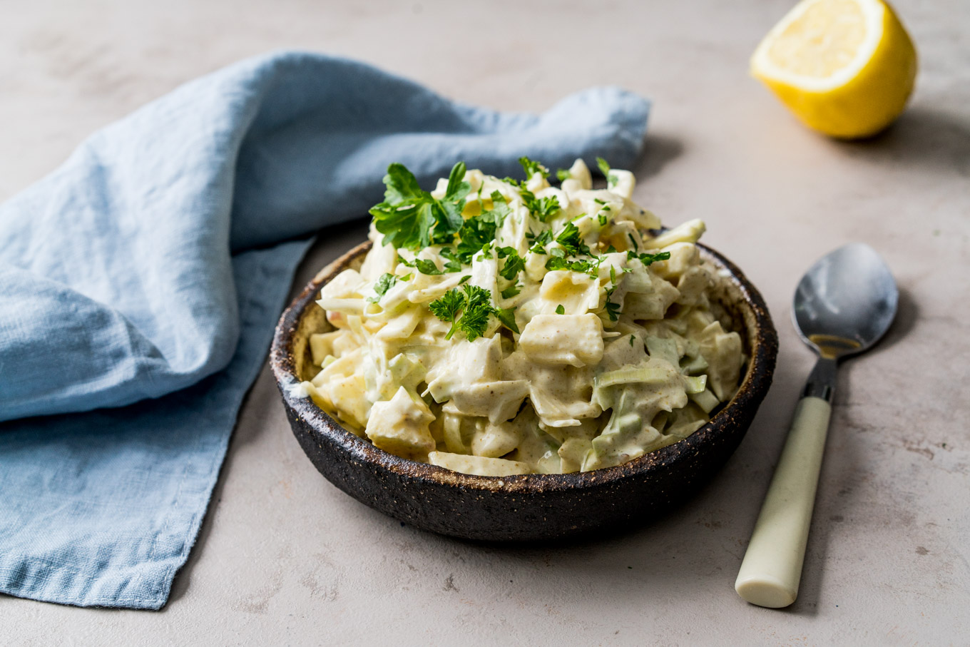 150 g valkokaalia 200 g turkkilaista jogurttia 2 tl omenaviinietikkaa