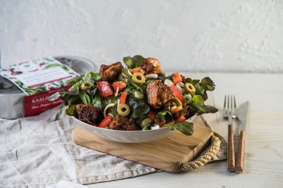 Ihana kaalikäärylesalaatti syntyy näin: pese ja revi salaattia kulhoon, pilko