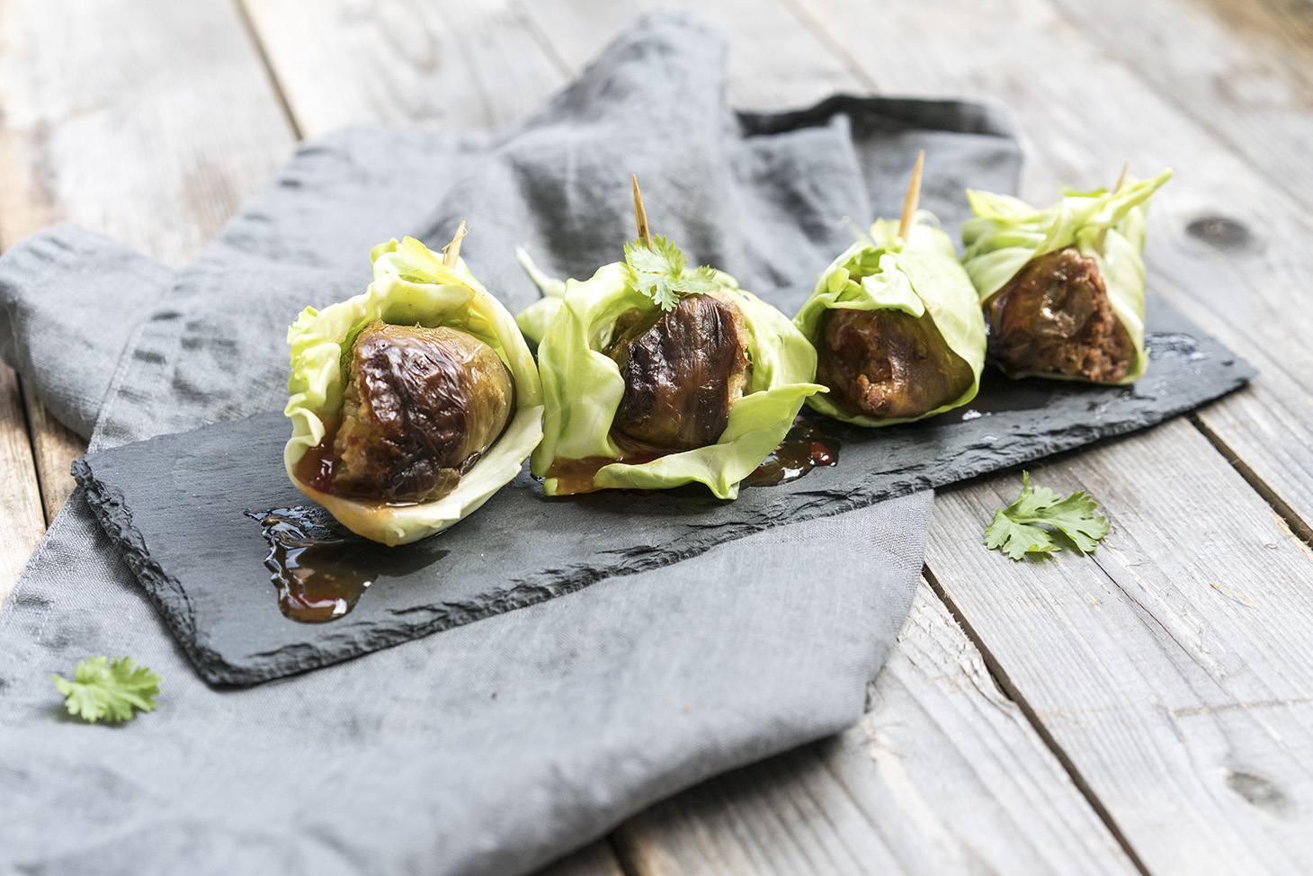 Varhaiskaalista syntyy tuliset käärylenyytit seuraavasti: kuumenna ja pilko kääryleet neljään